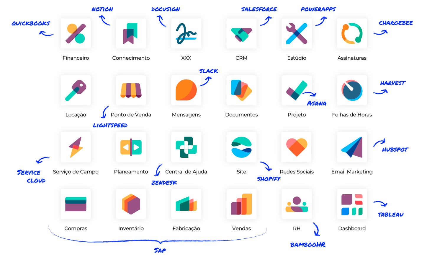 Tem dashboards, automações e relatórios instantâneos, que reduzem o erro humano e aceleram os processos. | |